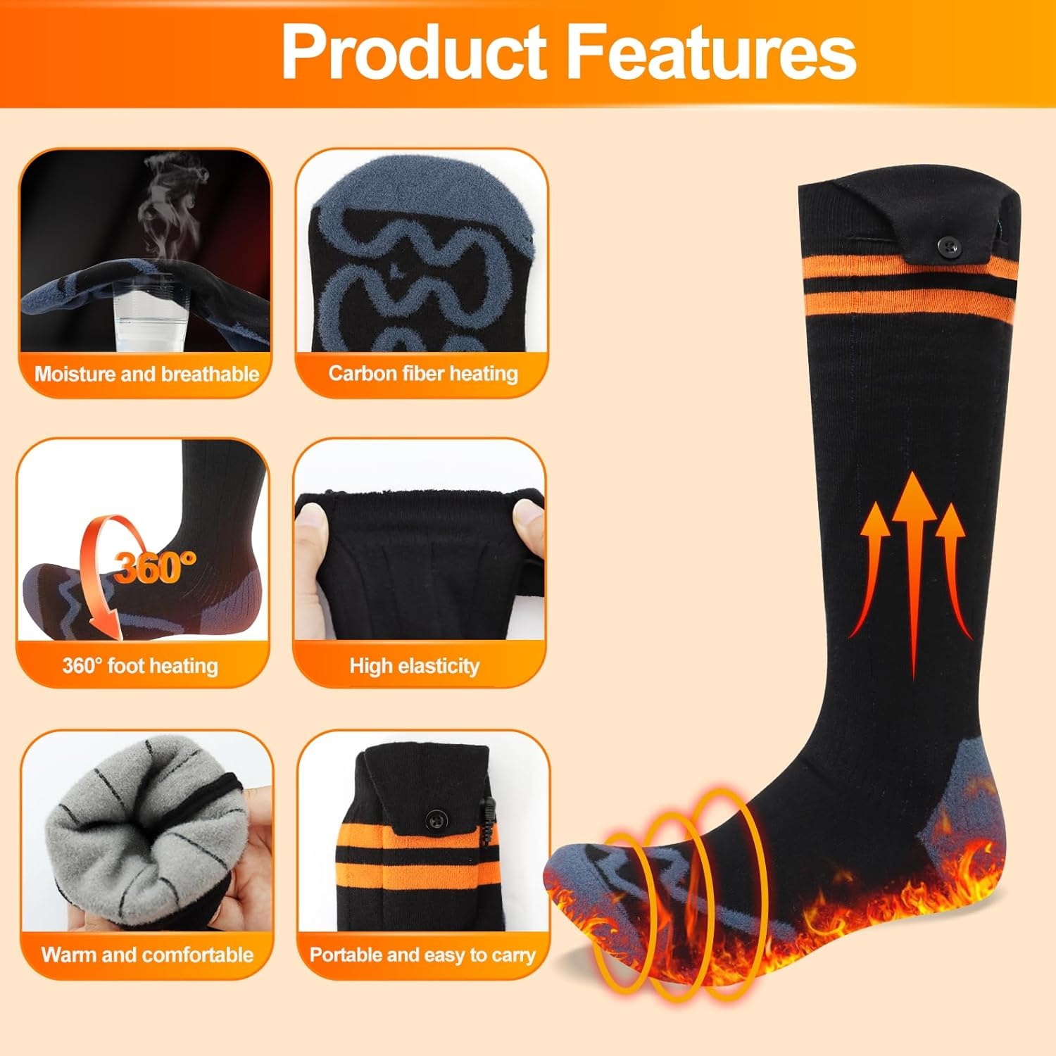 Diese wiederaufladbaren, elektrisch beheizbaren Socken sind perfekt für Damen und Herren, die auch bei kältesten Temperaturen nicht auf warme Füße verzichten möchten. Mit 4 anpassbaren Heizstufen bieten sie langanhaltenden Komfort für alle Outdoor-Aktivitäten oder gemütliche Wintertage.