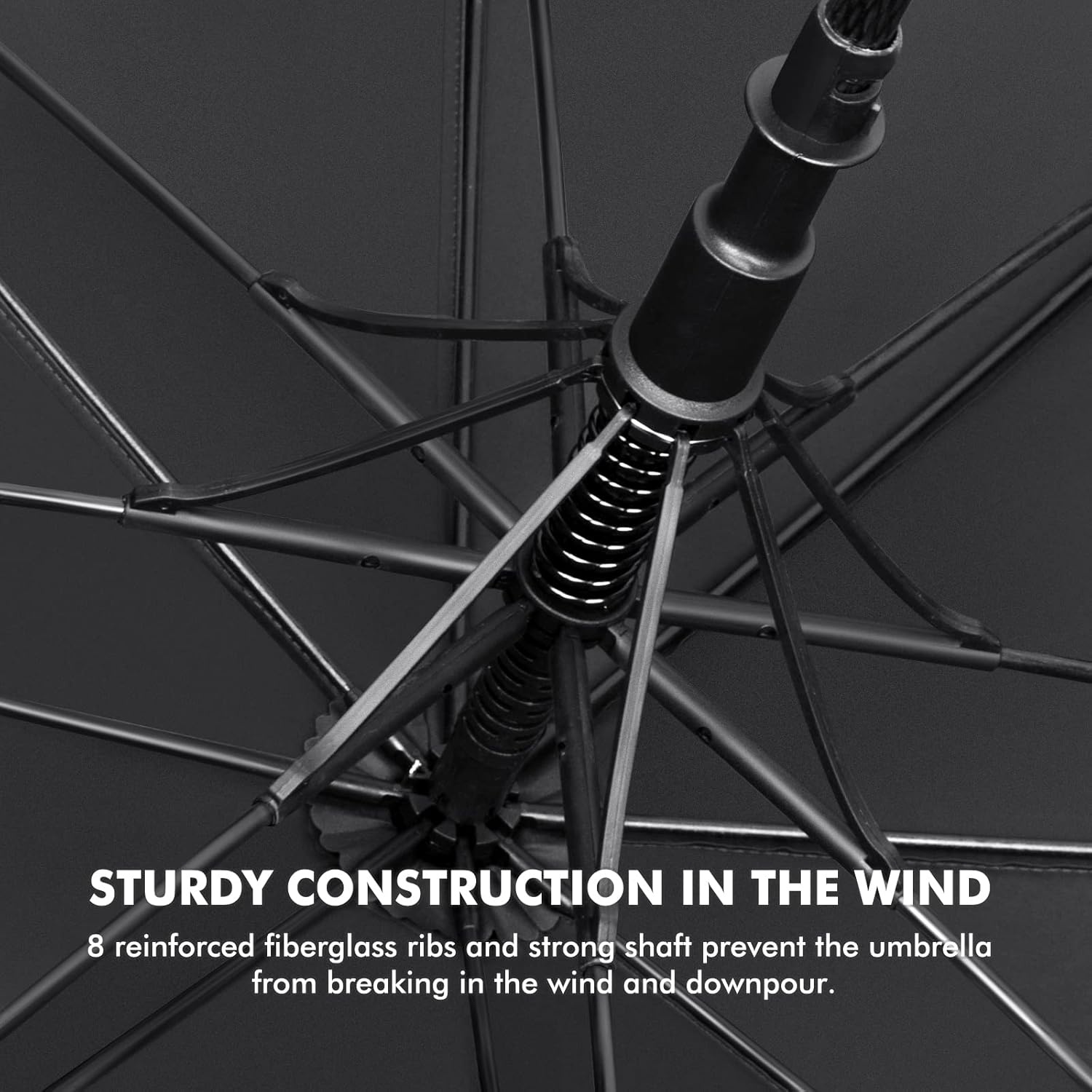Dieser hochwertige Golfschirm ist ideal für alle, die einen besonders großen und zuverlässigen Regenschutz suchen. Er bietet umfassenden Schutz vor Wind und Regen und ist auf Langlebigkeit ausgelegt.