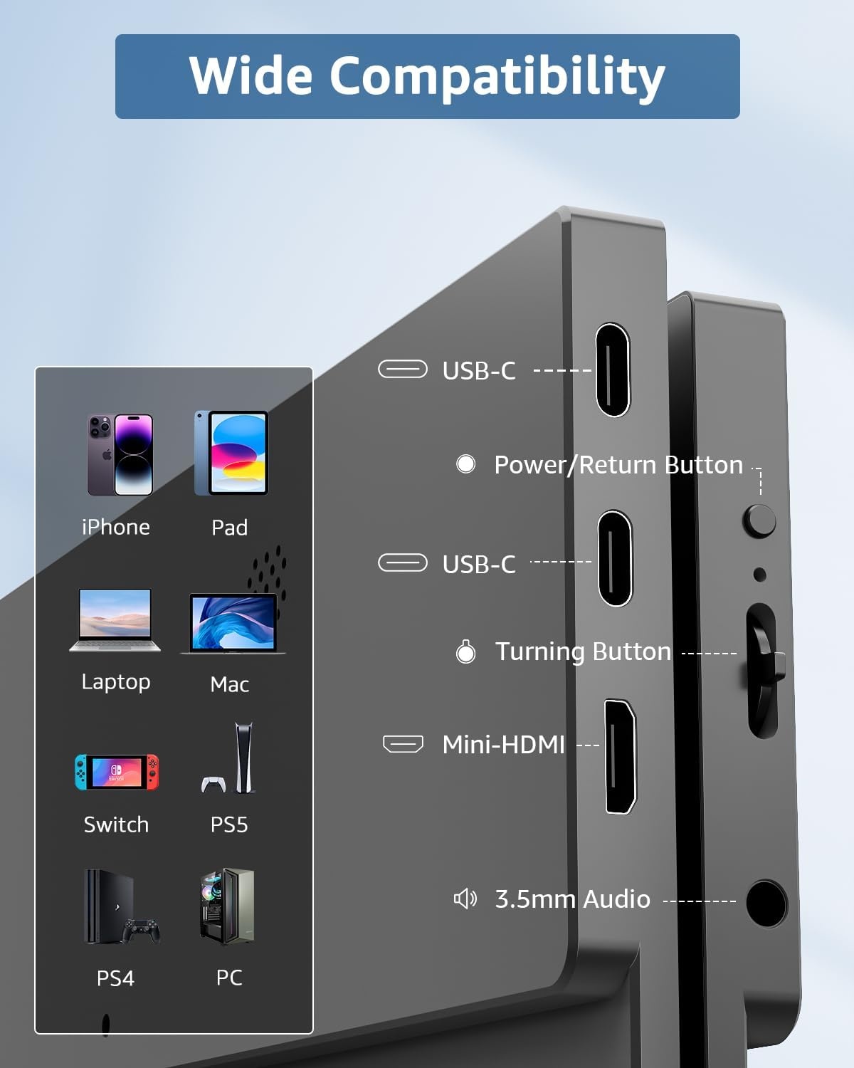 Steigern Sie Ihre Produktivität und Ihr Entertainment mit diesem tragbaren Monitor, Ihrem idealen Begleiter für unterwegs.