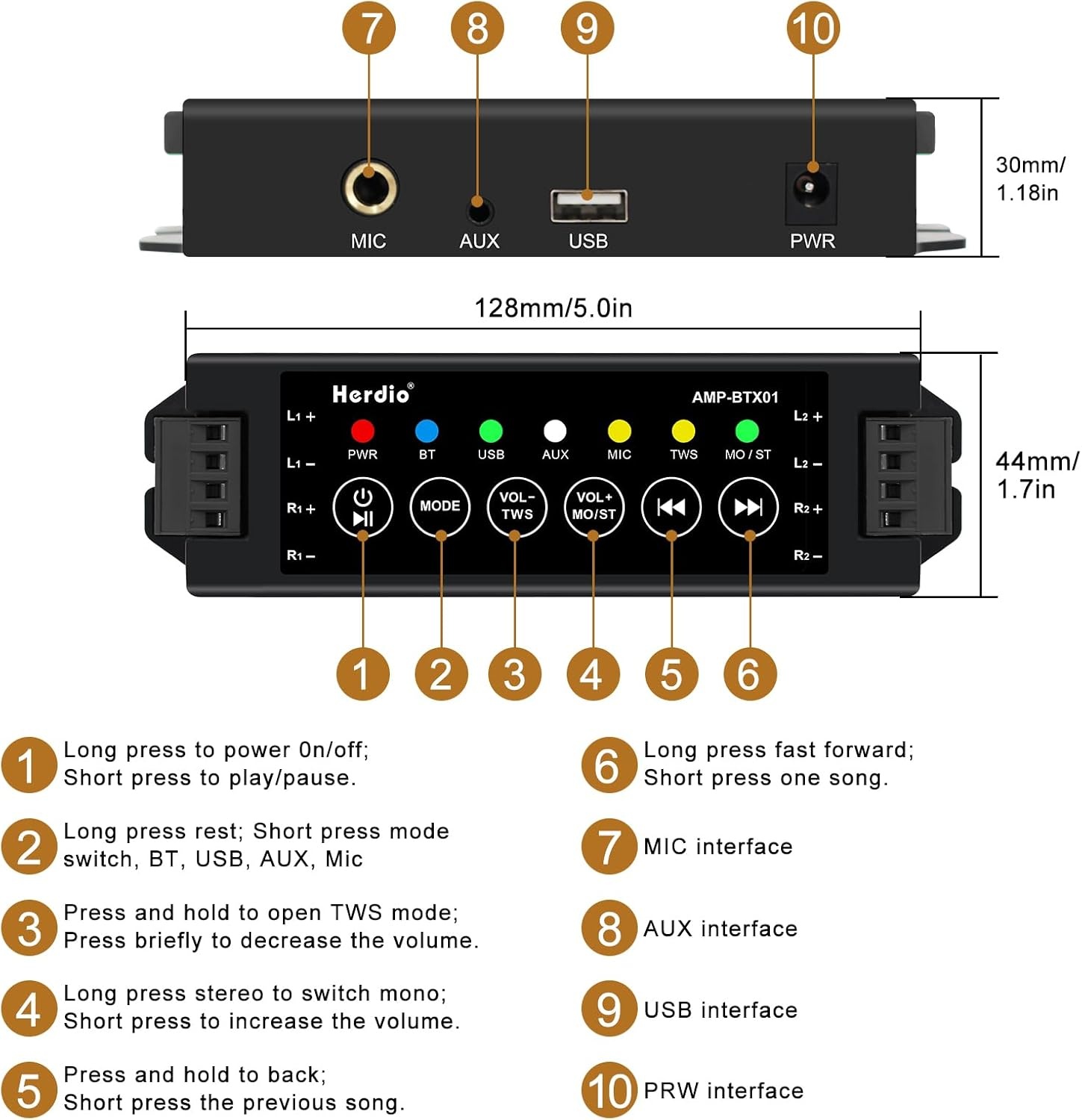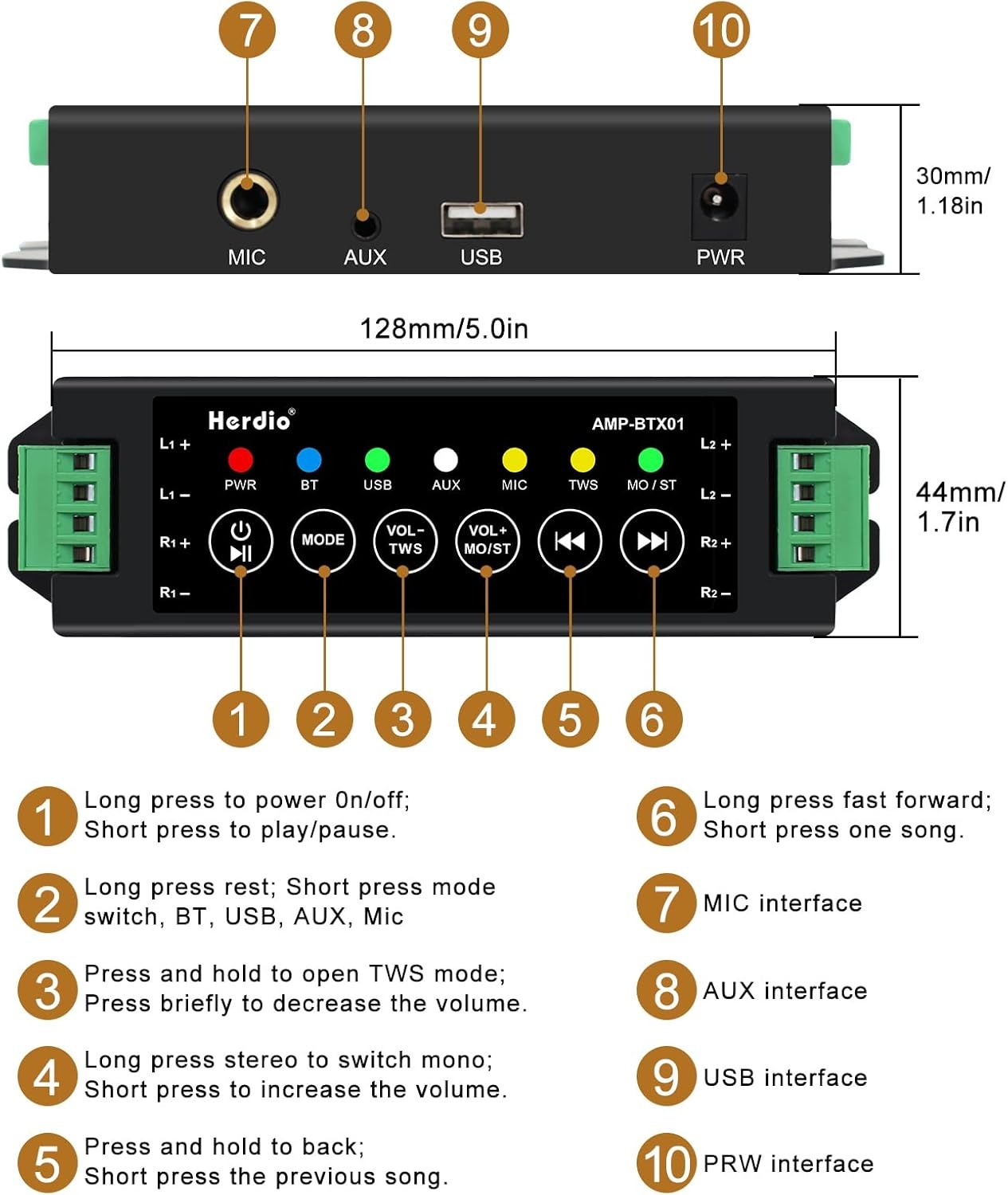 - Bluetooth 5.0 Konnektivität: Einfaches Musik-Streaming von Mobilgeräten mit bis zu 20 m Reichweite.
